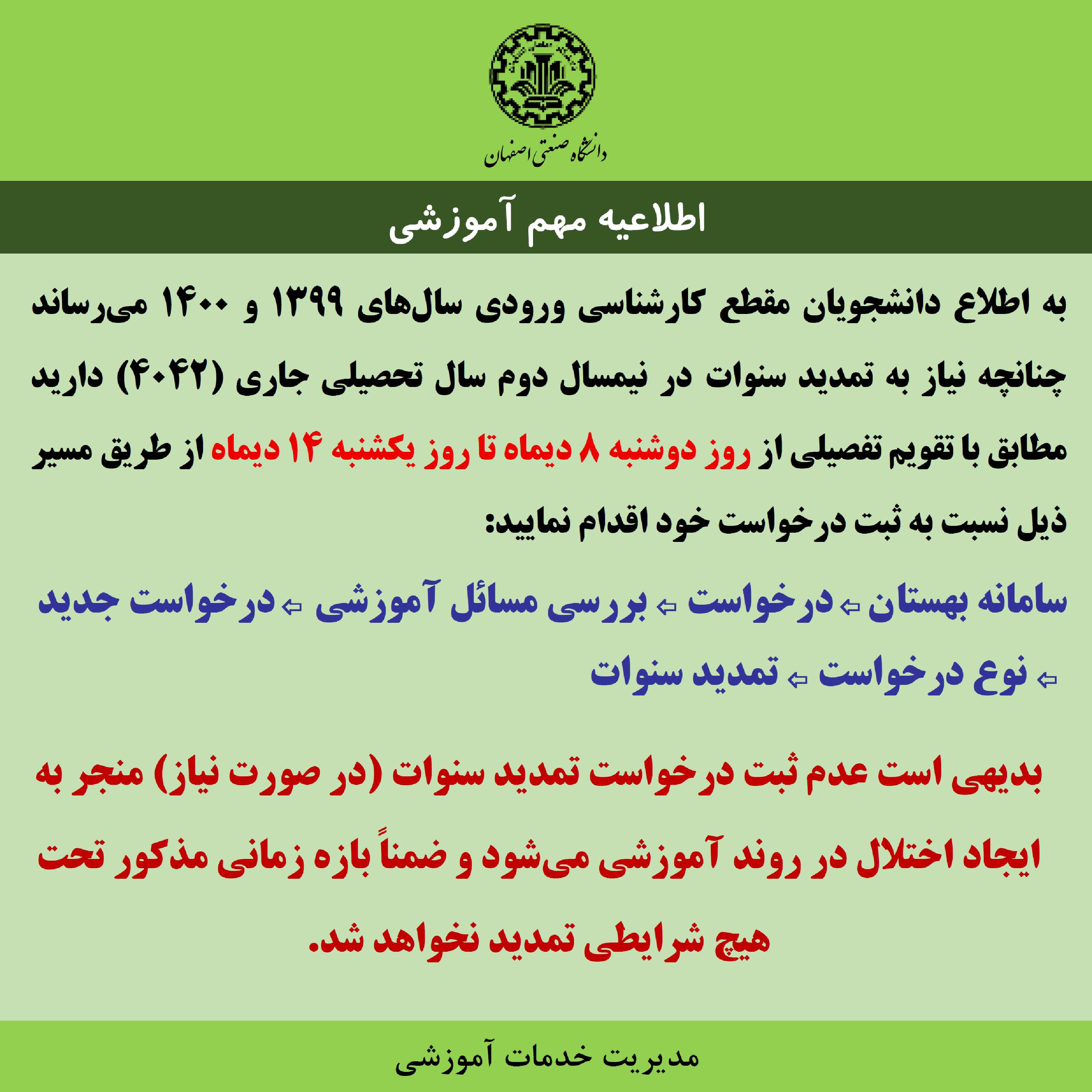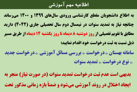 تمديد سنوات ترم 4042 و ضرورت رعايت برنامه زمان بندي