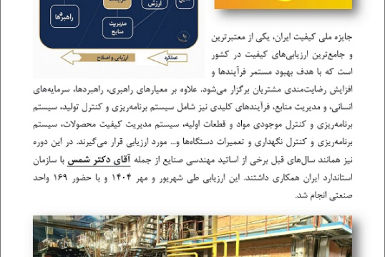 برگزاری نوزدهمین دوره جایزه ملی کیفیت ایران